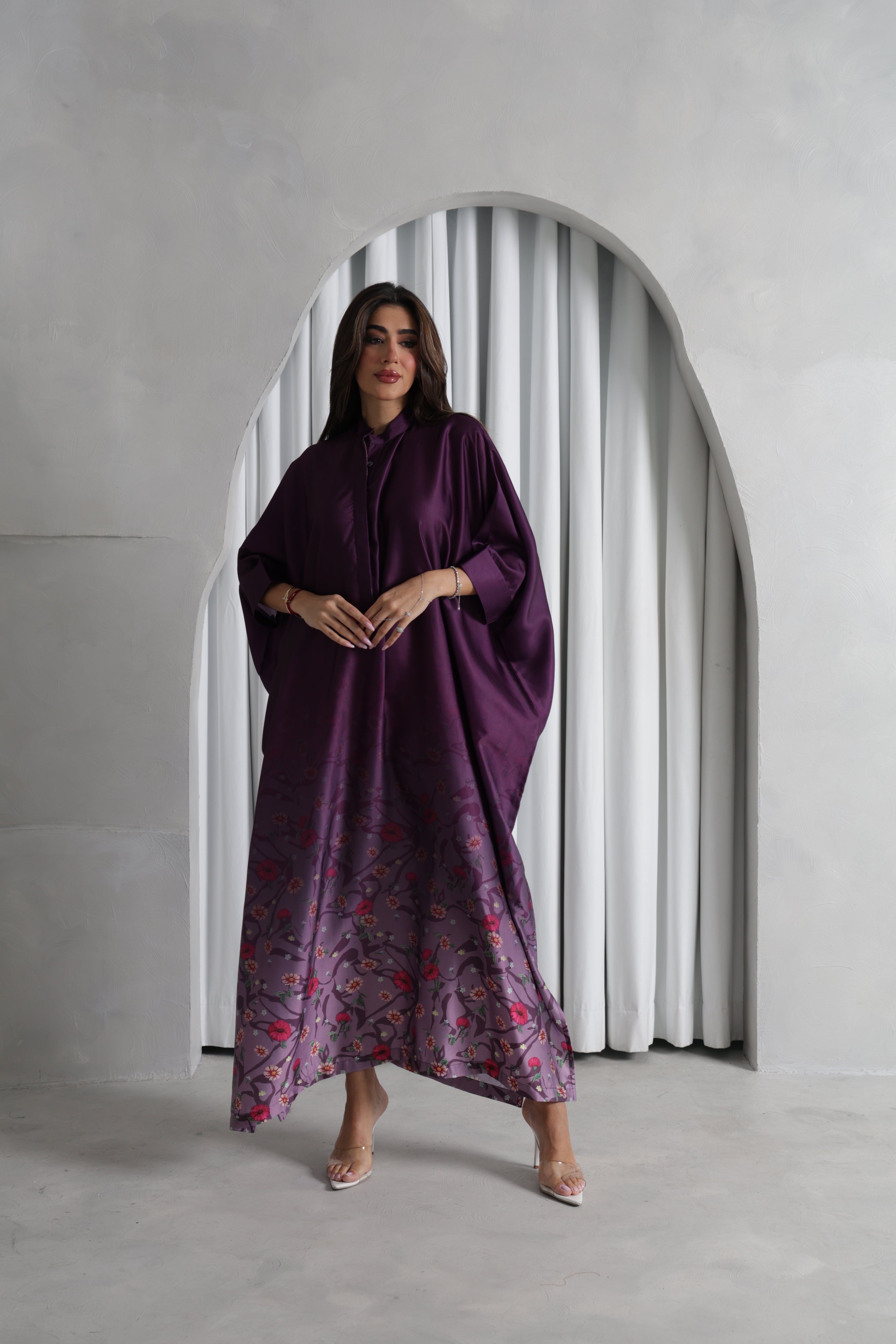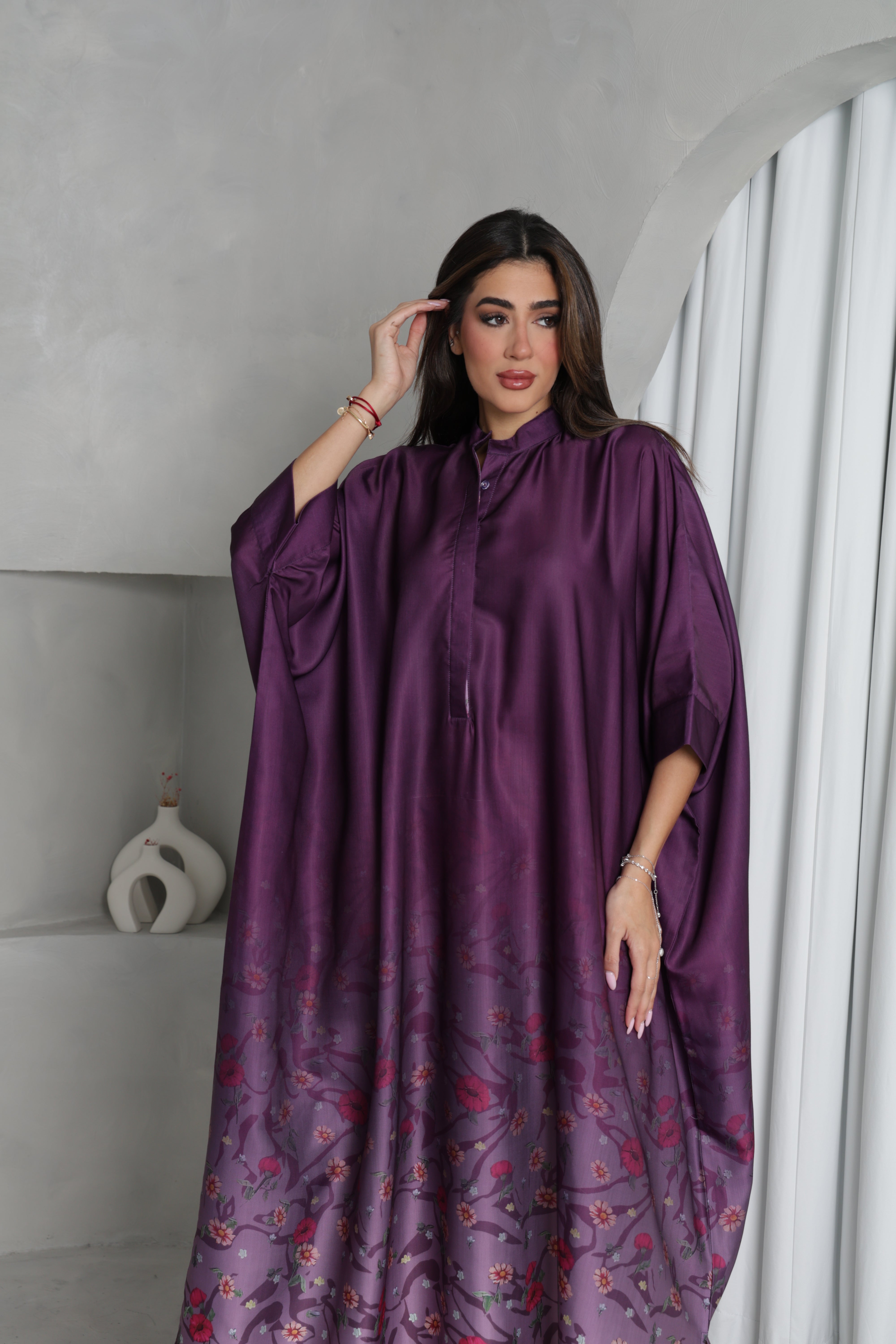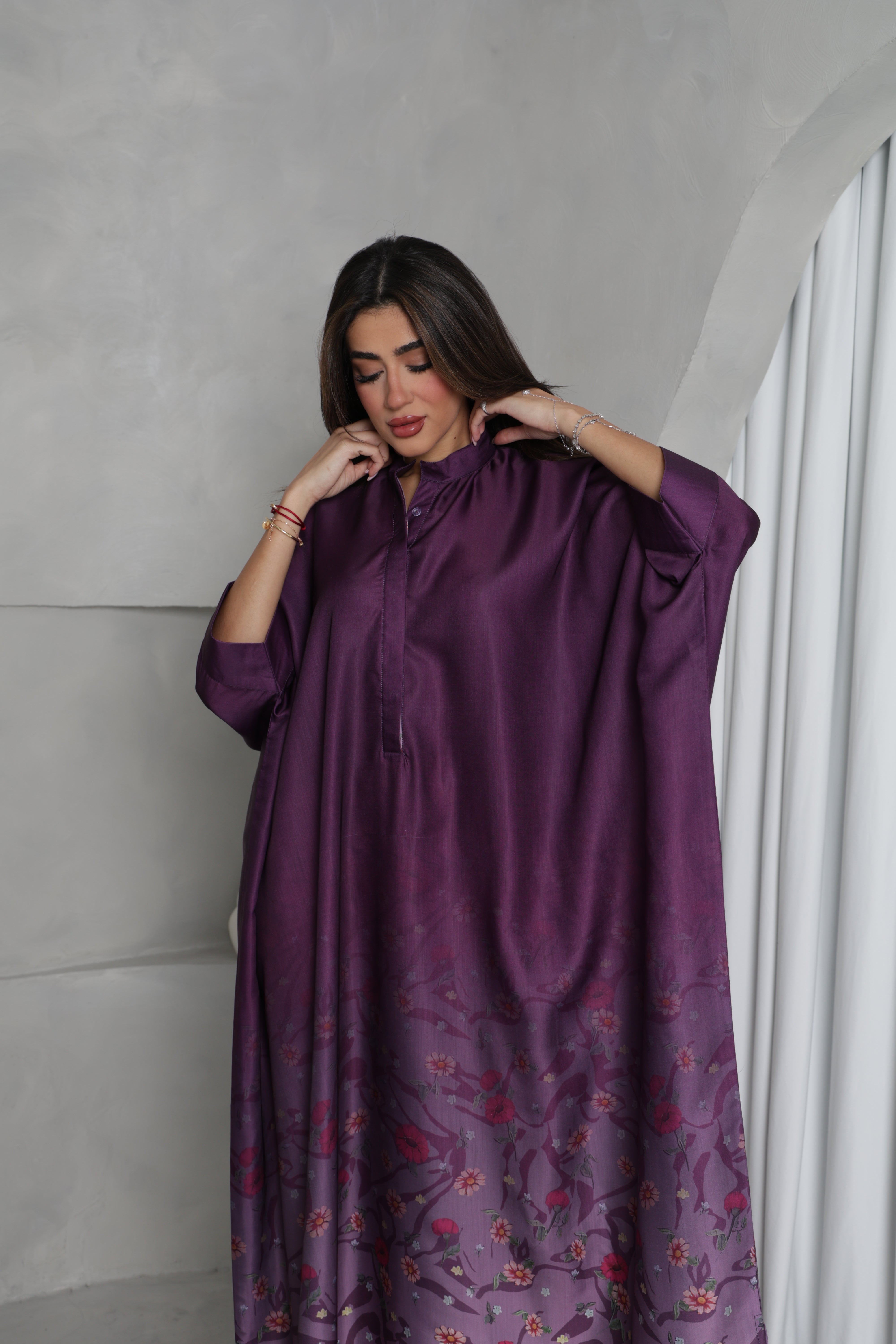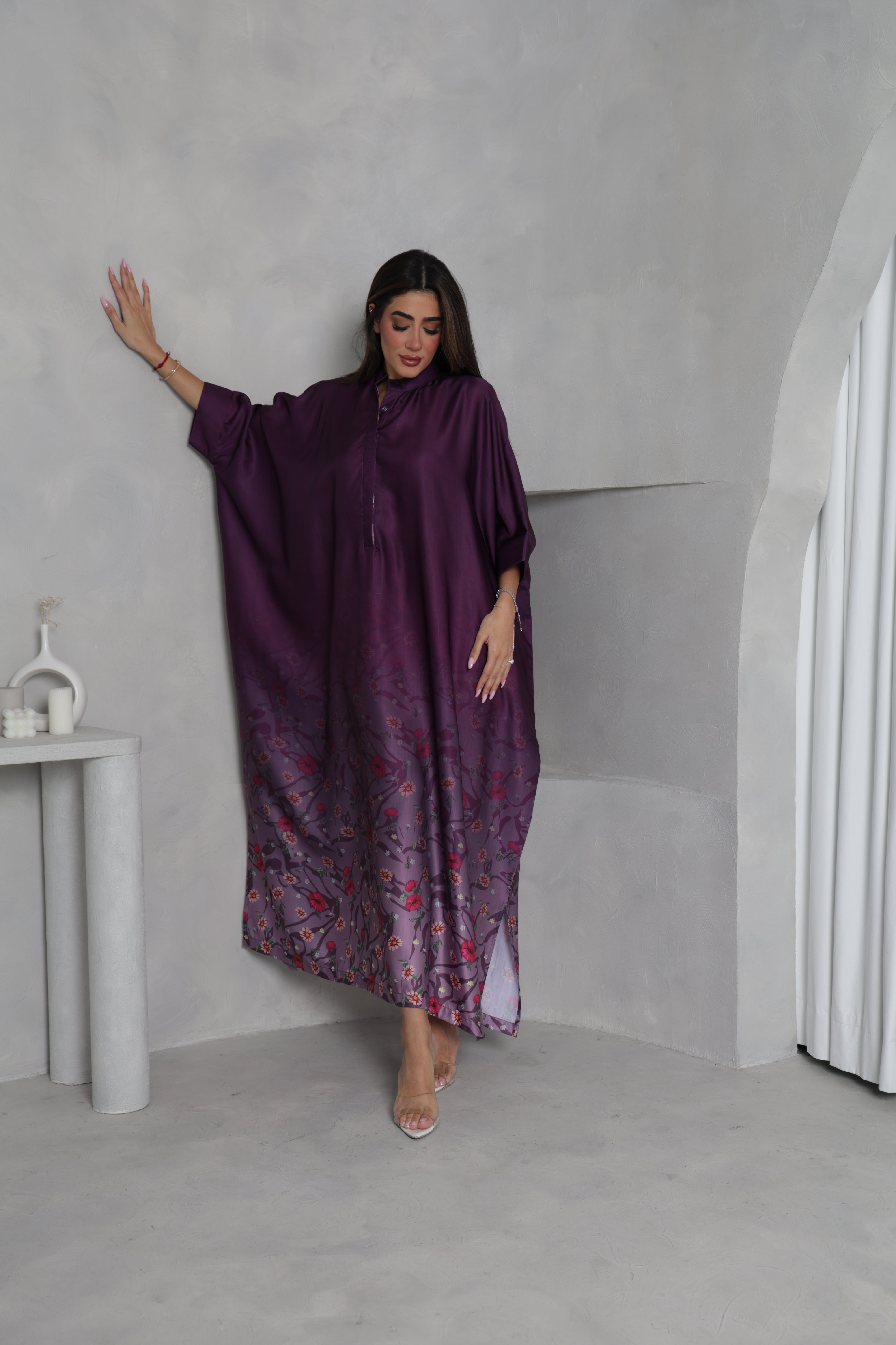 The Lilac Dream Dress is made from premium silk-linen fabric in a stunning lilac hue, featuring delicate floral patterns along the hem. Its flowing design exudes grace and elegance, perfect for special occasions and refined gatherings.